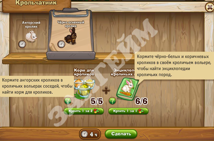 Задание на строительство кроличьего вольера доступно всем игрокам, имеющим на участке построенный крольчатник, а также трёх любых кроликов - коричневых, ангорских или чёрно-белых.