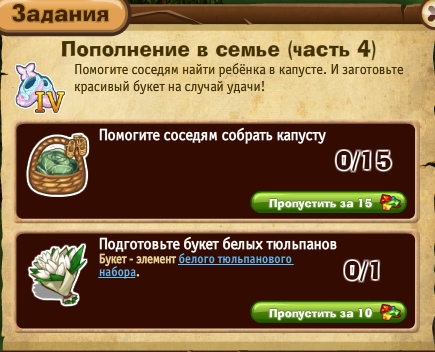 После выполнения вы получите задания: "Варим варенье" и "Встречаем аиста"
