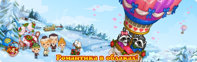 Награды: опыт, монеты, удобрение 1-сорт, воздушный поцелуй, заколдованный топор, торт "Влюбленное сердце", табличка "LOVE" - простой декор, Столик для влюбленных.