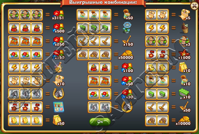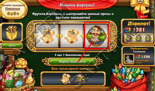 1. Три "Миколы" - Джекпот (количество призовых самоцветов зависит от того, сколько ВСЕ игроки вложили в игру самоцветов на