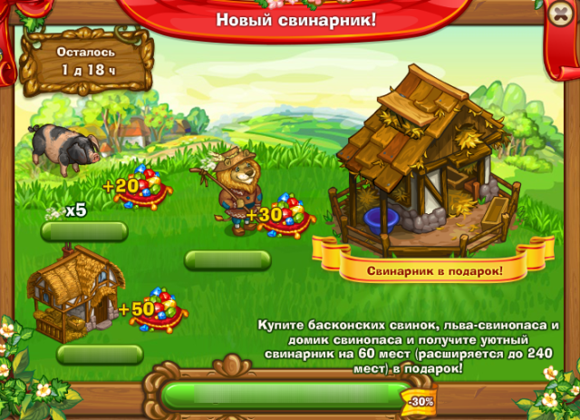 Купите басконских свинок, льва-свинопаса и домик свинопаса и получите уютный свинарник на 60 мест (расширяется до 240 мест) в подарок!