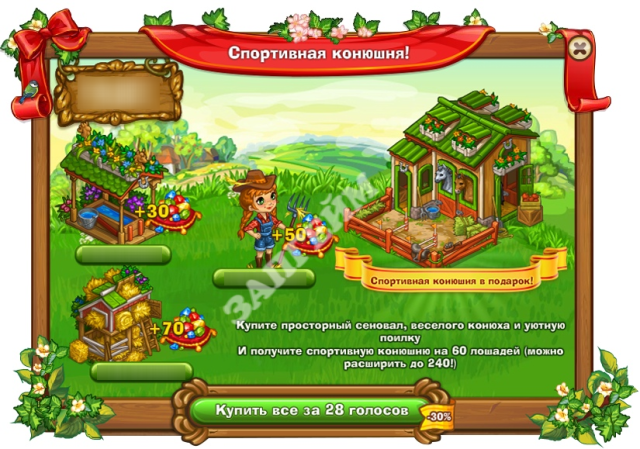 Купите просторный сеновал, веселого конюха и уютную поилку и получите спортивную конюшню на 60 лошадей (можно расширить до 240) в подарок!