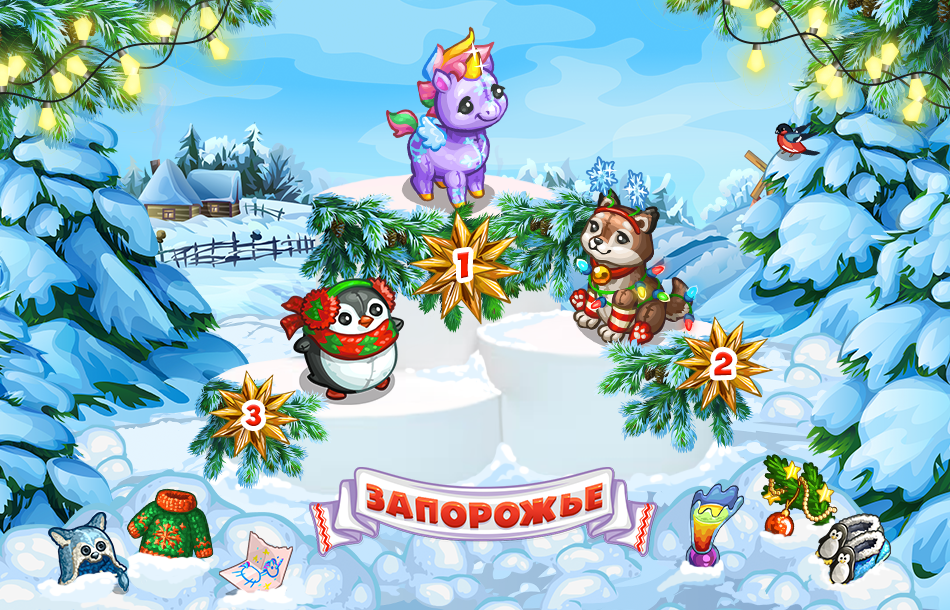 - 1 место - Плюшевый единорожек. Раз в сутки будет давать 6 энергии и 655 опыта; время от времени будет давать один из элементов набора плюшевых зверят.