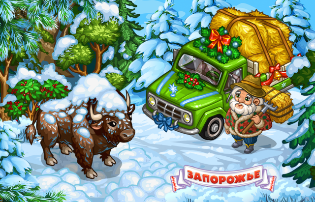 Участниками акции станут очаровательнейший снежный зубр, заботливый добряк-фермер и его празднично украшенный фургончик с сеном.