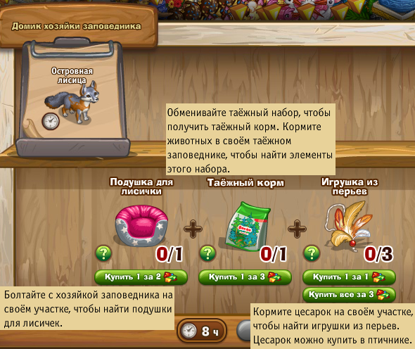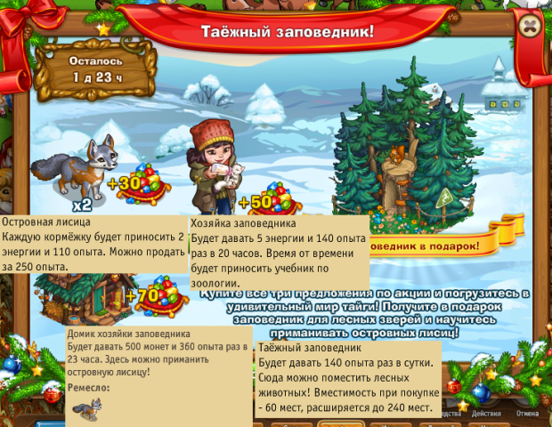 Чужих зверей не бывает! Именно так считает наша новая гостья. Хозяйка заповедника заботится о каждом малыше, нуждающемся в ласке и внимании. Поэтому в ней души не чают все лесные животные, а также такие редкие создания, как островные лисицы! Только 25 и 26 февраля покупай хозяйку заповедника, её домик и пару островных лисичек и получи таёжный заповедник в подарок!