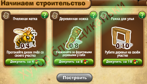 Двухэтажные улья прибыль - 50 опыта, 20 еды и 2 медовые соты каждые 6 часов, Медовый ослик - 4 энергии, 50 опыта и 1 элемент пчелиного набора
