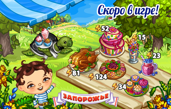 Еще больше разных угощений: молочный коктейль, фруктовый смузи, маффины, торт «Сказка», утка с яблокам и салатное ассорти! Вас ждут вкусные блюда, полные энергии, которые вы сможете приготовить в новом кафе... Уже завтра!
