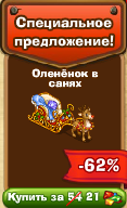 Оленёнок в санях - будет давать 5 энергии и 250 опыта раз в 48 часов. Можно продать за 10000 монет. |