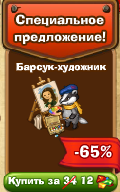 | Барсук-художник - будет давать 3 энергии и 350 опыта раз в 36 часов. Можно продать за 1500 монет. |
