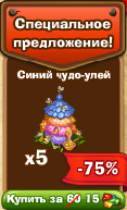 Синий чудо-улей х5 - будет давать 12 еды, 35 опыта и элемент пчелиного набора раз в 10 часов. Можно продать за 900 монет и 50 еды. |
