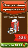 Островок зимы - раз в 16 часов будет давать 150 опыта и одно из трех мороженных - шоколадное, клубничное или вишневое. |