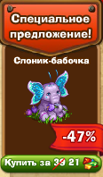 Слоник-бабочка - будет давать 6 энергии, 205 опыта и один из элементов гвоздичного, кленового, тюльпанного наборов или набора древоцвета раз в 16 часов. Можно продать за 8500 монет. . |